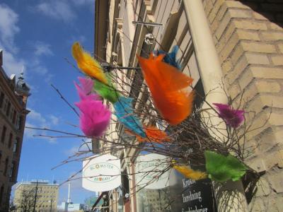 Uns ist außerdem aufgefallen, dass überall, auch in Lund, Birkenzweige mit Federn geschmückt und aufgehängt wurden. Das ist eine schwedische Ostertradition - genau wie bei uns Birkenzweige mit Eiern geschmückt werden.